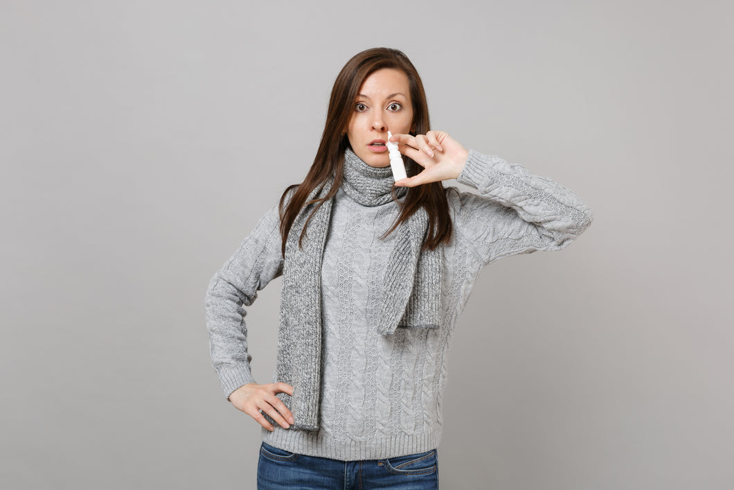 - ON ONSET OF SLIGHT SYMPTOMS SPRAY ONCE IN EACH NOSTRIL AND IN THE BACK OF THE THROAT.